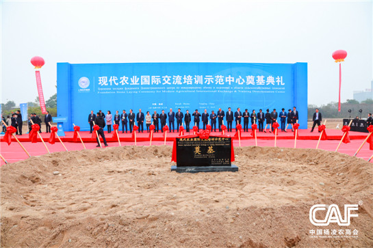 Церемония закладки фундамента международного показательного центра обменов и подготовки в области современного сельского хозяйства в образцово-показательной зоне Янлин провинции Шэньси (Фотограф: У Юнбин)